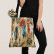 Aztec boho Ureinwohner amerikanischen Aquarell Stammes Design von türkisblauen Federn, abstrakt rote Sonnenblumen und geometrische Formen auf einem Wüstensandboden.
