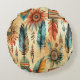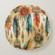 Aztec Boho Tribal Blue Feathers Rundes Kissen