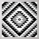 Aztec-Motiv in einem azentrischen Diamantenmuster in Schwarz, Weiß und Grau.