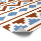 Ein Aztec-Stil-Design in einem digitalen und Vektormuster mit Rost/Terrakotta-Farbe und blauem Detail auf einem cremefarbenen Hintergrund.