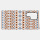 Ein Aztec-Stil-Design in einem digitalen und Vektormuster mit Rost/Terrakotta-Farbe und blauem Detail auf einem cremefarbenen Hintergrund.