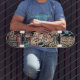 Aztec Mayan priest Skate board deck design of a Mayan Aztec High Priest carved relief artwork.
