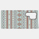 Aztec beeinflusste gemischte Motive in Rostfarben und ein cremefarbenes Detail auf blauem Hintergrund.