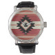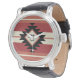 Aztekisches ethnisches Böhmisches Muster mit geometrischen Formen in Rot, Orange, Grau und Schwarz auf gestreiftem Hintergrund