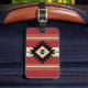 Aztekisches ethnisches Böhmisches Muster mit geometrischen Formen in Rot, Orange, Grau und Schwarz auf gestreiftem Hintergrund