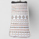 Aztec beeinflusste gemischte Motive in roten und grauen Details auf weißem Hintergrund.