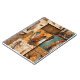 Aztekische Ureinflora-Stammbauweise aus Mustern blockierte Federn und geometrische Formen in braun, orange, adligen Wüstensand und blau.