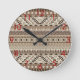 Aztec Tribal Print Neutral Browns Beige Taupe red Runde Wanduhr