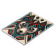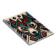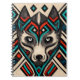 Das ist ein handgefertigtes, dekoratives Wolfsgesicht mit Azteken-Mustern in den Farben Schwarz, Rot, Türkis und Beige.