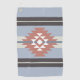 Aztekisches ethnisch böhmisches Muster mit geometrischen Formen in Weiß, Rosa, Grau und Blau auf gestreiftem Hintergrund für alle, die farbenfrohe amerikanische Gestaltung mögen.