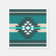 Aztekisches ethnisches Böhmisches Muster mit geometrischen Formen in Weiß, Beige und Türkis auf gestreiftem Hintergrund