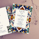 Azulejo blauer portugiesischer verzierter Fliesenmuster aus dem Mittelmeer alle in einem Hochzeitsladen bearbeitbare Vorlage sofort digitales Download mit Hochzeitsdetails und qr UAWG am Rücken