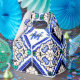 Ein wunderschönes Vintages Design von Azulejo Spanisch und Portugiesisch Muster Fliesen Muster in Marineblau, Weiß und Hellorange. Das Design kann auf das passende Monogramm angepasst werden. Ein wunderschöner mediterraner Geschmack, der sich perfekt für die Sommerferien-Wohngestaltung eignet. Das perfekte rustikale geometrische Mosaikdesign, das ideale Geschenk für jeden Anlass.