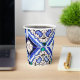 Azulejo Spanish Pattern Tiles Navy White Monogram Pappbecher