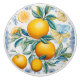 Dieser Keramik-Knopf zeichnet sich durch eine lebhafte Anordnung von goldenen Zitrusfrüchten aus, die teilweise ganz, teilweise in Scheiben geschnitten sind und von üppig grünen und blauen Blätter und zarten Blüten umgeben sind. Inspiriert von Azulejos, den berühmten handbemalten glasierten Fliesen Portugals und Spaniens, verbindet das Design botanischen Realismus mit feinen Zierdetails, darunter subtile Scroll-Schnörkel am Rand. Die Mischung aus hellgelben Früchten, weicher Vegetation und Kobaltnoten schafft ein frisches, aber raffiniertes mediterranes Ambiente. Dieser 1,5"-Knopf aus glatter, glänzender Keramik ist haltbar, einfach mit der mitgelieferten Schraube zu montieren und eignet sich hervorragend, um Schränke, Schubladen oder Möbeln einen sonnigen, handwerklichen Akzent zu verleihen.