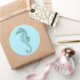 Rundaufkleber, um unsere "Azure Seepferd" Einladung mit einem Vintage-Bild eines Seepferds auf blau. Siehe dazu Einladung, Konfetti, viereckige Gunst-Tag, Geschenktaschen, Etikett und Packpapier. Siehe die gesamte Sammlung der Untersee-Aufkleber in FORDERUNGEN | Aufkleber und Etiketten.