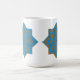 The alternating tones of cool blue, muted teal, and warm bronze add richness and balance, while the soft shadowing between layers gives the piece a sculpted, dimensional effect. The symmetry is bold and architectural, yet the flowing repetition creates a hypnotic rhythm that draws the eye inward.