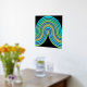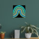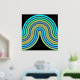Schönes zeitgenössisches Azurblau, türkisfarbenes Aqua, aquamarines Grün und echtes goldfarbenes geometrisches abstraktes Wellenmuster auf einem schwarzen Hintergrund. Elegantes, stilvolles und eklektisches minimalistisches Design für den künstlerischen angesagten Trendsetter, Vintage Retro-Kunststil oder abstrakten geometrischen Motivliebhaber. Entdecken Sie dieses Design mit den Farben der Innendekoration und dekorieren Sie Ihre Wand mit etwas Exklusivem und Einzigartiges an Ihrer Wand!
