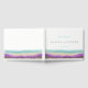 Hochzeitsgast-Buch mit Bright azure und rosa Magenta Naturlandschaft mit blühender Küste und Bergen. Die sonnige Naturlandschaft. Silhouetten von Bergen, Meeresküste und leuchtend rosa und violette Blumen. Aquarellmalerei Hintergrund Hochzeit Gastbuch. Die blaue Küste in Bloom Collection.