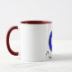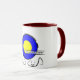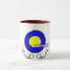 A high-quality ceramic coffee mug featuring a bold blue and yellow modern graphic design. Perfect for home or office use, adding a touch of artistic style to your daily routine."