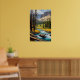Behold nature's masterpiece: an azure stream rushes between ancient rocks, its vibrant energy a reflection of life's boundless vigor. Beyond, a lush green valley extends its embrace, cradled by majestic mountains in the distance. A harmonious symphony of water, land, and sky.