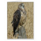 Die robuste Hawk-Karte. Auf einem alten Zedernholzpfosten steht der Raubfisch Ferruginous, der ihm behalte, auf seine nächste Mahlzeit zu achten. Bauern Liebe diese Vögel, um die Nagetierpopulationen auf natürliche Weise unter Kontrolle behalten.