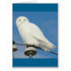 Schneeauulkarte. Meiner Meinung nach die schönste von allen Raptoren, die schneebedeckte Eule. Gerahmt vom kalten, blauen Winterhimmel sucht dieser prächtige Raubvogel mit seinen riesigen Talonen nach Beute aus einem Power-Pol.