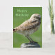 Burrowing Owl Birthday Card. Als ich ein Kind war, vor über vierzig Jahren, fanden diese niedlichen Eulen überall in der Prärie. Sie vergraben sich nicht, sie übernehmen verlassene Badger-Löcher. Leider hat die DDT-Kontamination in den 70er und 80er Jahren und der Verlust von Nistgebieten für die Landwirtschaft diese zu einem seltenen Anblick gemacht.