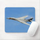 Der Rockwell B-1 Lancer Jetbomber, der als "Knochen" bekannt ist, führt eine Vorführung durch, bei der die Flügel in den dunkelblauen Himmel zurückgeschwemmt werden. Dieses Flugzeug ist für den Überschallflug geeignet und wird derzeit als schwerer strategischer Bomber für die United Staaten Air Force eingesetzt.