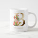 B Letter Gold Monogram | Rote Orange Grüne Blume Jumbo-Tasse