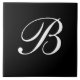 Klassisches Weißbuchstabenmonogramm auf schwarzem Hintergrund, B.