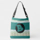 Stilvolle aquamarine und aqua gemusterte große Tüte, der aquamarine Hintergrund kann in jeder Farbe geändert werden, zusammen mit der mongrammatisierten Initial kann personalisiert werden, Ihre