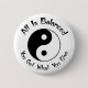 Alles ist ausgeglichenes - Sie erhalten, was Sie geben - weißes Knopf-Button mit schwarzem Beschriftung und yin Yang-Symbol.