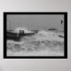 Der Fotograf Jon Sullivan hat dieses gewaltige Bild von Hurrikan-Wellen aufgenommen, die eine Brücke und ein Café schlüpfen. Dieses Schwarz-Weiß-Angstfoto drückt die ewige Kraft des Meeres während dieses schweren Wettersturms aus und schafft ein Gefühl unsicheren Schicksals.