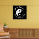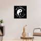 Alles ist ausgeglichen - du bekommst was du gibst - schwarzes Poster mit weißer Schrift und Yang Symbol.