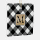 Schwarz-Weiß Büffel Karo kariert mit Monogramm und Jahr auf dem mittelbraunen Quadrat mit weißen und schwarzen Rändern an der Vorderseite und Ihr vollblütiges Foto auf der Rückseite. (FOTO TIP: Wählen Sie ein Foto mit dem Thema in der Mitte und/oder schneiden Sie es vor dem Hochladen auf eine ähnliche Form wie vor dem Hochladen aus, und es füllt den Foto-Bereich perfekt aus.) Kontaktieren Sie den Designer, wenn Sie dieses Design modifiziert oder auf einem anderen Produkt haben möchten.