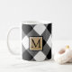 Schwarz-weißer Büffel-Karo kariert mit Monogramm, mit einem natürlichen braunen Quadrat und umgeben von einem B&W-Quadrat. Der Text-Schriftart kann für ein anderes Aussehen geändert werden. Kontaktieren Sie den Designer, wenn Sie dieses Design modifiziert oder auf einem anderen Produkt haben möchten.