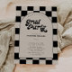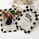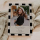 Unser Retro Checkered Abschluss Invitation verfügt über einen karierten Hintergrund und Retro Typografie. Personalisieren Sie diese Vintage Abschluss-Einladung durch Hinzufügen Ihres Fotos, Namens, Schule und andere Details. Fotos von Prostooleh / Freepik.