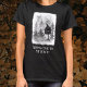 T - Shirt mit einem modernen, aber Vintag aussehenden Schwarz-Weiß-Bild einer Baba Yaga Hütte auf einem Hühnerbein gedruckt. Perfektes Outfit für ein leckeres Halloween-Party im Oktober. Die beste Wahl für eine echte Hexe. Sie können die Typografie anpassen.