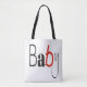 Weiße, große Tasche mit dem Wort "Baby" vorne in schwarzen und roten Buchstaben, super tragen alle Taschen für Babyartikel, Formel, Windeln, Kleidung, Mutter unterwegs,