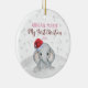 Watercolor Elephant Tragen Weihnachtsmannmütze Baby's 1. Weihnachtsmädchen Keramik Ornament. Personalisieren Sie diese einfach und fügen Sie Ihr eigenes Foto und Ihre Details hinzu. Ideal für ein Geschenk für neue Eltern.