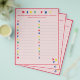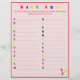 Das Design zeichnet sich durch einen hellrosa Hintergrund und einen hellen roten Rahmen und Text aus. "BABY ABC" wird oben in hellen Farben angezeigt. Auf Wunsch können Sie die Richtung für eine personalisiertere Touch anpassen. Die Gäste werden gefragt, Babyartikel anzuzeigen, die mit dem angezeigten Buchstaben beginnen. Auch in blau erhältlich. Konzipiert zur Koordination mit der "ABC Baby Shower and Kinderzimmer Collection".