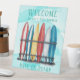 Ich hoffe, Ihnen gefällt dieser aquamarine alkoholfarbene Hintergrund und eine Palme mit bunten Surfbrettern. Entsprechende Einladungen und Babydusche sind in dieser Kollektionssuite erhältlich. Sie können dieses Design auf jedes Produkt Ihrer Wahl übertragen.