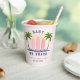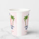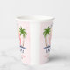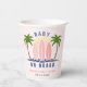 Baby an Bord Surfen spritzen rosa Mädchen duschen Papiertasse. Machen Sie sich bereit, eine Welle der Süße zu fangen! Dieses reizende Babyduschdesign, das mit viel Charme überflutet ist, feiert die Ankunft eines kleinen Surfers. Drei rosa Surfbretter, Palmen und die Sonne, die durch einen hellrosa Himmel stürzen, schaffen eine lebendige Strandszene. Der spielerische Wasserspritzer verleiht der Welt einen Hauch von Launen und ist damit der perfekte Weg, um ein neues Abenteuer zu erleben.