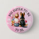 Große Schwester zu Baby-Duschknöpfen. Das süße kleine Mädchen sitzt neben ihrem kleinen Welpe German Shepherd in einem Stück hübscher Aquarell-Blume. Rosa und blaue Schmetterlinge und hübsche Wildblumen.