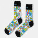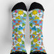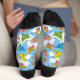 Cartoon von Kleintieren. Schnecken, Schmetterlinge, Vögel, Bienen, Sonne und Wolken. Nahtloses Muster. Benutzerdefinierte Hintergrundfarbe. Benutzerdefinierte Farbe des oberen Streifens. Benutzerdefinierter Text auf jeder Socke.