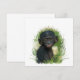 Das einjährige Baby BonoboApe Pan paniscus Lola aus dem Twycross Zoo, das im grünen Gras sitzt. Mutter ist nicht weit weg. Auf diesem faszinierenden Foto sitzt ein Baby inmitten eines üppig grünen Grases.