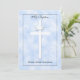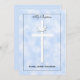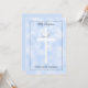 Diese schöne Taufeinladung beinhaltet ein Kreuz und Taube auf einem blauen wolkenähnlichen Hintergrund, zusammen mit dem Namen Ihres Babys. Die Rückseite der Einladung steht für Ihre individuelle Taufeinladung zur Verfügung. Copyright henishouseuse paper