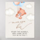 Fügen Sie Ihrer Babydusche mit diesen stilvollen und unvergesslichen Party eine persönliche Touch hinzu! Das Design bietet einen Babybär mit blauen Ballons auf beigem Hintergrund.