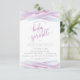 Dieses moderne und modische 3,5" x 5" kundengerechtes Baby besprühen diagonale Anschläge des handgemalten Aquarells der Einladungseigenschaften über der Spitze und der Unterseite mit einer silbernen Linie Akzent. Der Text "Baby besprühen" ist in einem hübschen Skript-Schriftart und wird gezeigt im Rosa. Die Rückseite ist eine zusammenpassende rosa Farbe (aber kann zu jeder möglicher Farbe besonders angefertigt werden, die Sie wählen), mit diagonalen Streifen.